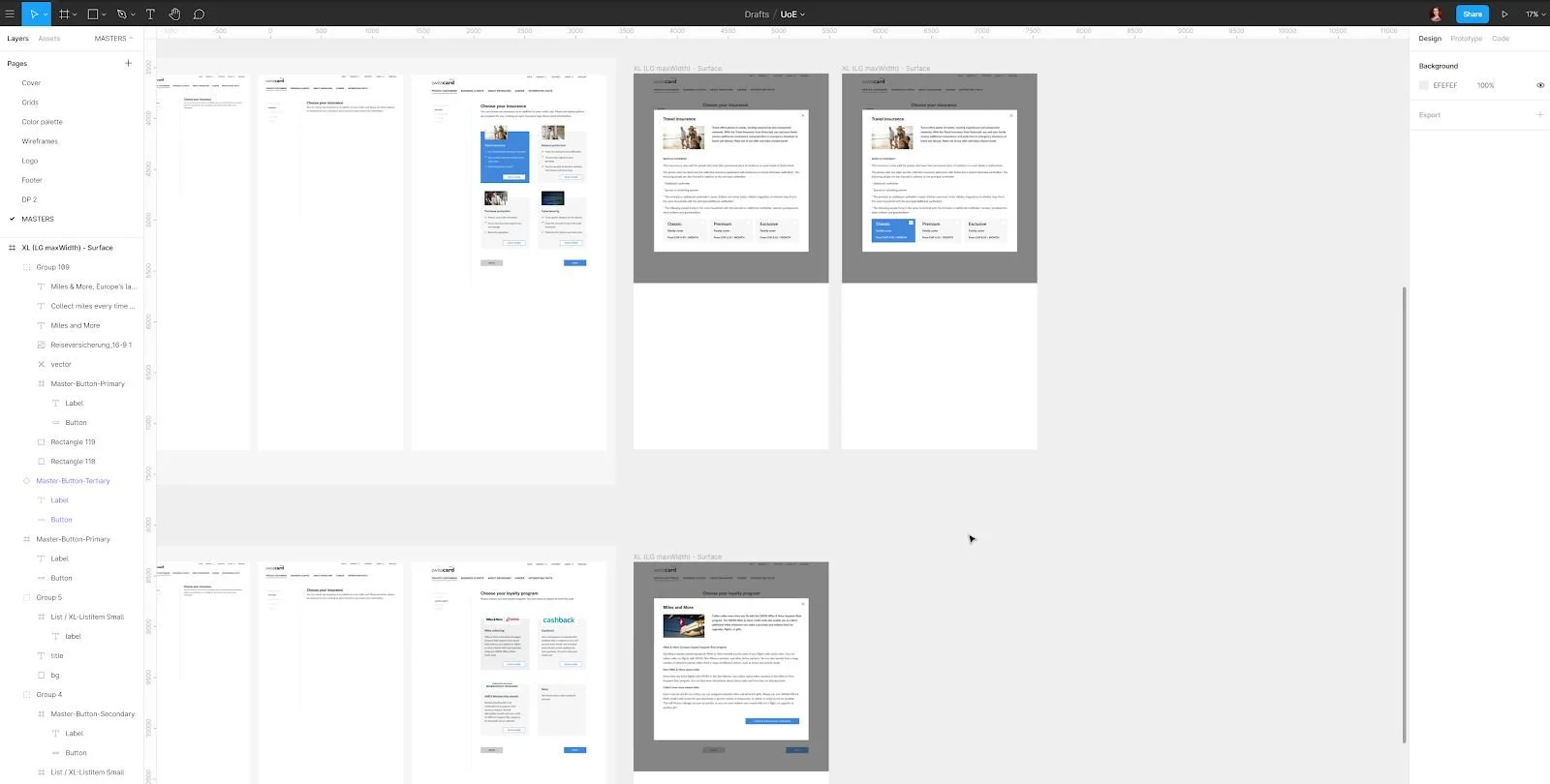 Using Figma, I was able to build all the screens which would then be used in a prototype. The company already uses responsive grids to make sure the website looks right on each device. I have prepared responsive design for the first two pages and continued with a large screen afterwards (the only necessary size for a prototype).