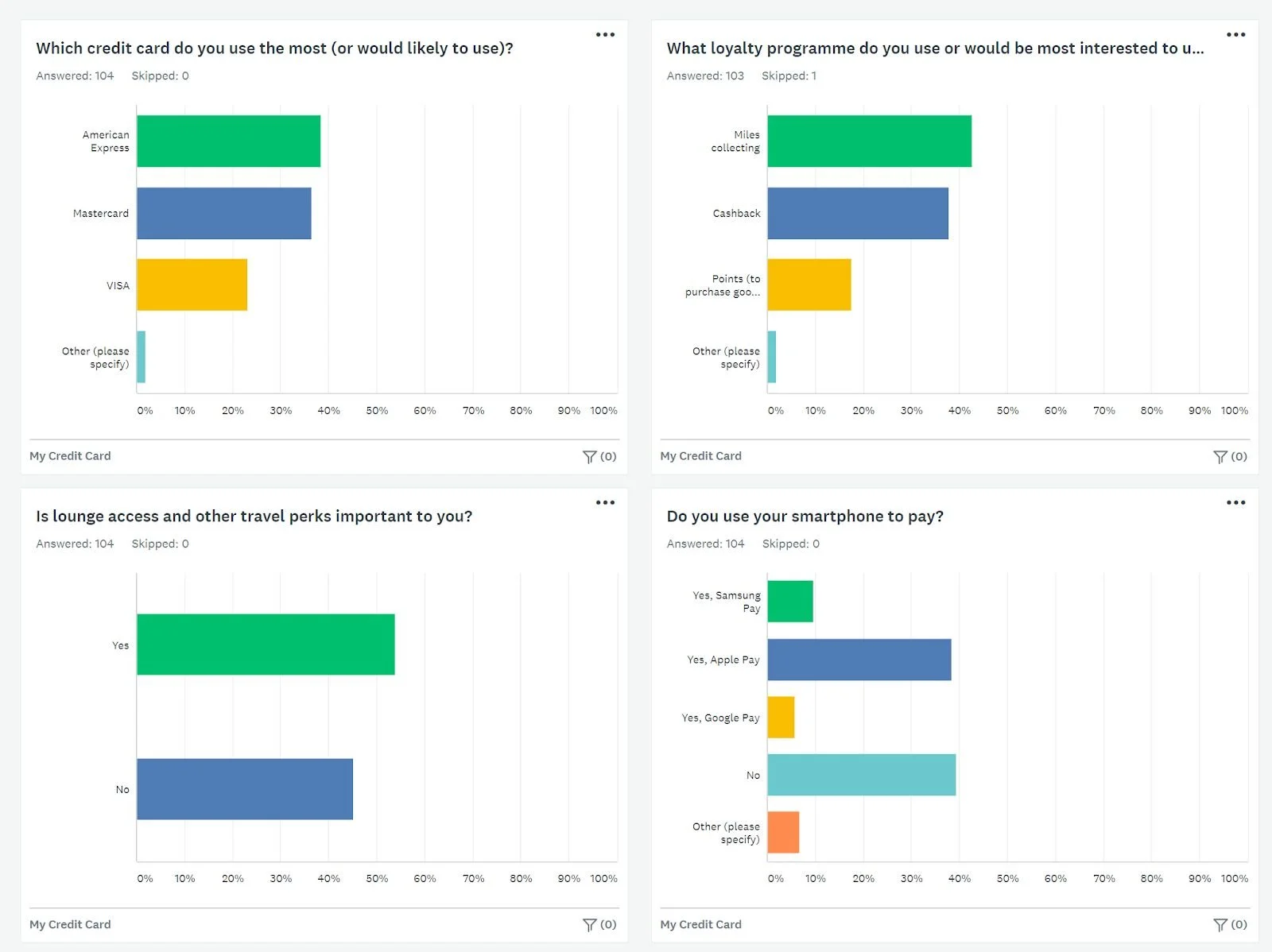 To be able to commence work on Personas I have created a ten question survey on credit card usage. I have received over hundred responses.